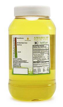 Agave nectar (more accurately called agave syrup) is a sweetener commercially produced from several species of agave, including Agave tequilana (blue agave) and Agave salmiana.[1][2] Agave syrup is sweeter than honey and tends to be less viscous. Most agave syrup comes from Mexico and South Africa.