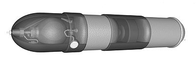The A1 was the first rocket design in the Aggregat series. It was designed in 1933 by Wernher von Braun in a German armed forces research program at Kummersdorf headed by Walter Dornberger. The A1 was the grandfather of most modern rockets. The rocket was 1.4 metres (4 ft 7 in) long, 30.5 centimetres (12 in) in diameter, and had a takeoff weight of 150 kilograms (331 lb). The engine, designed by Arthur Rudolph, used a pressure-fed rocket propellant system burning alcohol and liquid oxygen, and produced 300 kgf (660 lbf, 2.9 kN) of thrust for 16 seconds. The LOX tank was located within the fuel tank and insulated with a fibreglass material. The rocket was stabilised by a 40 kg (88 lb) 3 axes gyroscope system in the nose, supplied by Kreiselgeräte G.m.b.H. The entire rocket could not be rotated for stability as with a ballistic shell, as centrifugal force would force the liquid fuel to rise up along the walls of their tanks, which made feeding propellants to the combustion chamber difficult. Although the engine had been successfully test fired, the first flight attempt blew up on the launching pad on 21 December 1933, a half a second after ignition.[1] The cause was a buildup up of propellants before ignition of its 660-pound-thrust engine.[2] Since the design was thought to be unstable, no further attempts were made, and efforts moved to the A2 design. The A-1 was too nose-heavy, and to compensate, the gyroscope system was moved to the middle of the A-2, between the oxygen and alcohol tanks.[3][4][5]
