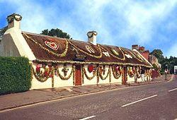 It is thought that Agnes first met William Burnes, 11 years her senior, a market gardener by trade, at the Maybole Fair in 1756. Agnes and William married on 3 December 1757 in Ayr, and settled at Alloway, South Ayrshire, living in a clay cottage that William had both designed and built.[8] At this Alloway cottage they raised four of their seven children, including her eldest son, Robert Burns, who was born on 25 January 1759.[6] The midwife at the birth of Robert was Agnes McClure, wife of the blacksmith John Tennant, and their next-door neighbour.[9] Gilbert was born on the 28 September 1760, Agnes on 30 September 1762 and Annabella on 14 November 1764.