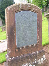 When Agnes's husband William Burnes died aged 62 in 1784 she went to live with her son Gilbert, at Mossgiel, until 1798 and then lived at Dinning in Nithsdale for two years before they moved to Grant's Braes, East Lothian. Agnes died aged 87 and is buried in the churchyard in Bolton Parish Church, Bolton, East Lothian.[6] Agnes and William had seven children, three of whom predeceased her. Of her many grandchildren, at least ten died before her, a reflection of her own old age and the much shorter life expectancies of those times.[12]