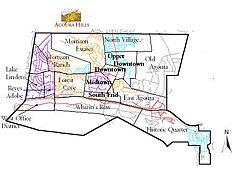 Agoura Hills is called the "Gateway to the Santa Monica Mountains National Recreation Area".[25] The city is unofficially divided into a number of varied districts centered on the modern Downtown area of the city. The most notable of these districts include Morrison Ranch, Downtown, Forest Cove, South End, Malibu Junction, East Agoura, and Old Agoura.