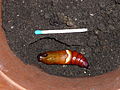 The caterpillars can be in a number of different colours. As well as brown (pictured below) they have been seen in bright green and black.[9]