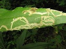 The shape of the mine is often characteristic of the species and therefore useful for identification. For some of the serpentine leaf miners it is possible to use the mine to indicate the instar of the animal that made it, and in some cases its cause of death.[1] Polytene chromosomes can be isolated from some agromyzid larvae. Adults occur in a variety of habitats, depending on the larval host plants.