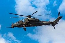 The A129 is equipped with infrared night vision systems and is capable of operating at day or night in all-weather conditions.[6] Laser systems are fitted onto newer aircraft for range-finding and target designation purposes, the A129 can laser-designate targets for other friendly aircraft to attack.[16] On the AW129D, Rafael Advanced Defense Systems's Toplite III sight is used as the primary targeting system; it is able to act as a FLIR and has both manual and automatic target tracking modes, Toplite also provides a greater detection and identification range than the 1970s era HeliTOW sensor it replaced.[17][19] In 1998, Israel Aircraft Industries (IAI) formally partnered with Agusta to offer various avionics and weapons upgrades to potential A129 operators; various IAI technologies have since been proposed and implemented on Italian A129s.[20][21]