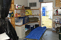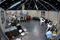 Aid stations may also be established during training operations where the deployment of a "full hospital" is not required and the injuries treated are not as severe as those experienced during combat operations.[5] In such situations, aid station medics provide "level one" care and treatment of non-life-threatening injuries or illness. There is generally no provision for treating "serious or life-threatening" problems beyond stabilization for transportation to a larger medical facility.[5]