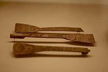 Food was transferred from the cooking pot using a ladle (kasup) into a lacquerware bowl (itanki) for eating. These bowls were obtained through trade with the ethnic Japanese and were large enough to hold 400 ml worth of food. Chunks of meat or fish that were too large to fit in the bowl were placed on mats woven from reeds.[2]:406–420 Items such as fish roasted on a spit or sito were eaten by hand, but otherwise, most foods were eaten with chopsticks (pasuy) or spoons (parapasuy). Parapasuy translated literally means “wide chopstick”. Both spoons and chopsticks were carved from wood.[2]:406–420