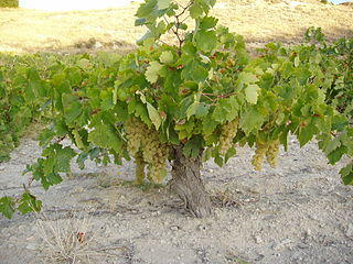 Airén is a variety of Vitis vinifera, a white grape commonly used in winemaking. This grape is native to Spain where it represents almost a quarter of all grapes grown.[1] As of 2010, Airén was estimated to be the world's 3rd most grown grape variety in terms of planted surface, at 252,000 hectares (620,000 acres), down from 306,000 hectares (760,000 acres) in 2004, where it held 1st place, although it is almost exclusively found in Spain.[2] Since Airén tends to be planted at a low density, several other varieties (including Cabernet Sauvignon and Merlot) are more planted in terms of number of vines.