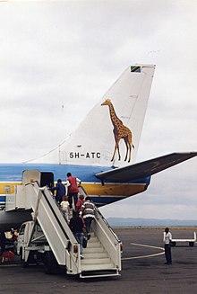 Air Tanzania was relaunched in September 2007 after the dissolution of the partnership with SAA with two leased Boeing 737-200s in its fleet. The new brand represented the company's name, Mount Kilimanjaro and the airline's international destinations. The introduction of the airline's new logo on a leased Airbus A320 bore the image of the imposing giraffe – Tanzania's national icon, to replace the South African Airways flag symbol.[33][34] On 1 October 2007, the revamped Air Tanzania made its inaugural flight on the Dar es Salaam to Mwanza via Kilimanjaro route.[35]