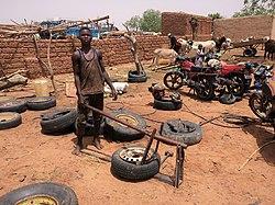 An air compressor is a pneumatic device that converts power (using an electric motor, diesel or gasoline engine, etc.) into potential energy stored in pressurized air (i.e., compressed air). By one of several methods, an air compressor forces more and more air into a storage tank, increasing the pressure. When the tank's pressure reaches its engineered upper limit, the air compressor shuts off. The compressed air, then, is held in the tank until called into use.[1] The energy contained in the compressed air can be used for a variety of applications, utilizing the kinetic energy of the air as it is released and the tank depressurizes. When tank pressure reaches its lower limit, the air compressor turns on again and re-pressurizes the tank. An air Compressor must be differentiated from a pump because it works for any gas/air, while pumps work on a liquid.[2]