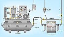 In principle, a coalescing filter is an ideal way to separate water from the compressed air stream. Practically speaking, this is not the case. Coalescing elements are extremely sensitive to oil and particulate contamination and therefore would be better placed as a second stage dryer. However, the dew point performance of a coalescing filter places it in the primary category of compressed air dryers. In order to use coalescing filters as primary dryers, they are typically set-up in pairs. The first filter has an element with larger gaps that are designed to remove oil from the stream. The second filter uses a finer element that is intended to remove water vapor. Because of the sensitivity of the elements, coalescing filters are not particularly common. One area where these filters have found acceptance is with dental compressors. The way that dental compressors are designed and used makes a two-stage coalescing filter an almost ideal solution for water contamination in these systems.