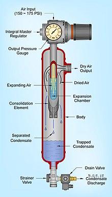 Some manufacturers produce "cold coalescing filters" that are positioned inside of the air dryer at the point of the lowest air temperature (the point at which maximum condensation has occurred).[1][2]