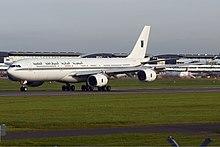 In August 2014, Defence Minister David Johnston announced the intention to convert a KC-30A multi-role tanker to VIP configuration whilst maintaining its ability to serve as a military tanker and transport aircraft.[1] The new plane has tail number A39-007. The new plane will be painted in "air force grey" rather than the current colour scheme. While no official photos have been released, the aircraft has 100 lie-flat seats for its passengers.