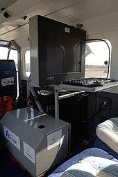 A monitor in the cockpit displays detailed images in real time, and the system also logs the image and Global Positioning System data at a rate of 30 gigabytes (GB) per hour for later analysis.[1] The on-board data processing system performs numerous real-time processing functions including data acquisition and recording, raw data correction, target detection, cueing and chipping, precision image geo-registration, and display and dissemination of image products and target cue information.[25]
