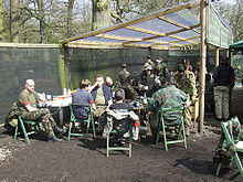 Airsoft gameplay varies in style and composition, but often range from action shooting to short organized live action role-playing (LARP) scenarios, close quarters battle skirmishes, military simulations (MilSim) or historical reenactments on open fields.[6] They are played in indoor courses or outdoor fields.[7] Combat situations on the field may involve the use of genuine military tactics to achieve objectives set in each game. Participants may attempt to emulate the tactical equipment and accessories used by modern military and police organizations. A game is normally kept safe by trained professionals acting as supervisors and umpires.
