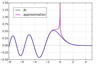 When |arg(z)| = 0 these are good approximations but are not asymptotic because the ratio between Ai(−z) or Bi(−z) and the above approximation goes to infinity whenever the sine or cosine goes to zero. Asymptotic expansions for these limits are also available. These are listed in (Abramowitz and Stegun, 1954) and (Olver, 1974).