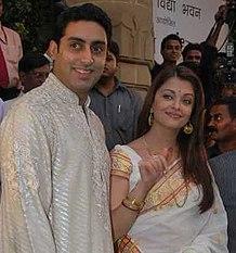Though they both appeared in Dhai Akshar Prem Ke (in which her then longtime boyfriend, Salman Khan, had a brief cameo) and Kuch Naa Kaho, Abhishek Bachchan fell in love with Rai whilst filming Dhoom 2.[183] Their engagement was announced on 14 January 2007 and later confirmed by his father, Amitabh Bachchan.[184] The couple married on 20 April 2007 according to traditional Hindu rites of the Bunt community, to which she belongs.[185] North Indian and Bengali ceremonies were also performed. The wedding took place in a private ceremony at the Bachchan residence, "Prateeksha", in Juhu, Mumbai.[185] They have been described in the Indian media as a supercouple.[186][187] Rai is very close to her family, and lived with them in Bandra, Mumbai, until her marriage.[188][189][190]