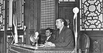 Between 1949 and 1954 Syrian politics was punctuated by four military coups. Based on his strong influence in the army, Al-Hourani was considered to have played a part in these coups, however there is no concrete evidence to support that. He was initially particularly close to the leader of the third and fourth coups, Adib al-Shishakli, who effectively ruled Syria from 1951 until 1954. Al-Shishakli's decision to sign a decree distributing state lands to the peasantry in January 1952 appears to have been under al-Hawrani's influence.[4] However, as the dictator grew more autocratic his influence waned, and when al-Shishakli decided to ban the Arab Socialist Party in April 1952, he went into exile in Lebanon. There, in November that year, he agreed to merge the Arab Socialist Party with the Arab Ba'ath Party led by Michel Aflaq and Salah al-Din al-Bitar. The latter thus gained a substantial base of active supporters for the first time. The unified party adopted the name Arab Ba'ath Socialist Party. It was disbanded, along with all Syrian political parties by president Nasser in 1958. The relation between Al-Hourani and Aflaq ended acrimoniously in 1962.