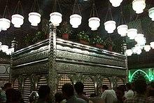 To mark the site of burial, known as Ra's al-Husayn (Arabic: رَأس ٱلحُسَين) or Mashhad Ra's al-Husayn, Taher Saifuddin had a zarih built in Mumbai,[15][16] which was later installed at the mosque in 1965 just before his death. It was subsequently inaugurated by his son, Mohammed Burhanuddin.[6]