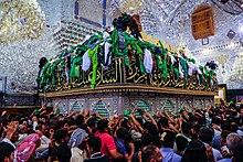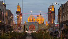 Al-Kadhimiya Mosque (Arabic: مَسْجِد ٱلْكَاظِمِيَّة, romanized: Masjid Al-Kāẓimiyyah) or Al-Kadhimayn Shrine (Arabic: حَرَم ٱلْكَاظِمَيْن, romanized: Ḥaram Al-Kāẓimayn) is a Shi'ite Islamic mosque and shrine located in the Kādhimayn suburb of Baghdad, Iraq. It contains the tombs of the seventh and ninth Twelver Shī'ī Imāms, respectively Mūsā al-Kāẓim and his grandson Muhammad al-Jawad. Also buried within the premises of this mosque are the historical scholars Shaykh Mufīd and Shaykh Naṣīr ad-Dīn aṭ-Ṭūsi.[1][2][3] Directly adjacent to the mosque are two smaller shrines, belonging to the brothers Sayyid Raḍī (who compiled Nahjul-Balāghah) and Sayyid Murtadā.
