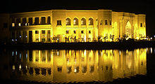 The Al Faw Palace (also known as the Water Palace) is located in Baghdad approximately 5 kilometers from the Baghdad International Airport, Iraq. Saddam Hussein commissioned its construction in the 1990s to commemorate the Iraqi forces' re-taking of the Al-Faw Peninsula during the Iran-Iraq conflict.[1]