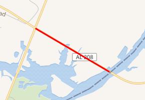 State Route 208 (SR 208) is a .839-mile (1.350 km), west–east route that serves as a connector between SR 165 and the bridge across the Chattahoochee River at Cottonton, the only bridge across the river between Phenix City and Eufaula. From its western terminus, the route continues east into Georgia as Georgia State Route 39 Spur (SR 39 Spur).[2]