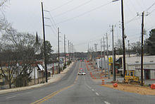 The north–south section is named Old Montgomery Highway and Greensboro Avenue while the east–west section was formerly routed on University Boulevard. In 2015, in order to divert traffic from the campus of the University of Alabama, the east-west segment of the route was removed from University Boulevard and diverted onto Veterans Memorial Parkway, which becomes 15th Street at its intersection with US 82. The route changes direction at the intersection of Greensboro Avenue and 15th Street south of downtown Tuscaloosa.