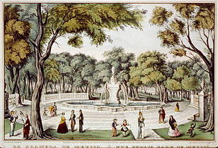 The Alameda Central in 1848 by Nathaniel Currier. Museo Amparo, Puebla City.[11]