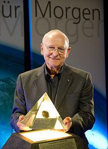 Bean received the University of Texas Distinguished Alumnus Award in 1970 and the Distinguished Engineering Graduate Award.[33] Bean, the first Texan to walk on the Moon, was awarded the Texas Press Associations Texan of the Year Award for 1969.[34] The 1973 Robert J. Collier Trophy was awarded to NASA and the Skylab crew.[35] Bean was awarded an Honorary Doctorate of Science from Texas Wesleyan College in 1972, and was presented an Honorary Doctorate of Engineering Science degree from the University of Akron (Ohio) in 1974.[11] The city of Chicago held a parade and presented gold medals to the Skylab astronauts in 1974.[36] Bean was the recipient of Fédération Aéronautique Internationale's prestigious Yuri Gagarin Gold Medal for 1973 in Sydney, Australia.[37] In 1975, President Ford presented Skylab commander Gerald Carr with the Dr. Robert H. Goddard Memorial Trophy at a White House ceremony, on behalf of all Skylab astronauts (including Bean).[38] Bean was a co-recipient of AIAA's Octave Chanute Award for 1975, along with fellow Skylab 3 astronauts Jack Lousma and Owen Garriott.[39] In 2019, Northrop Grumman named the spacecraft for the NG-12 mission the S.S. Alan Bean.[40]