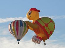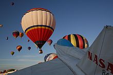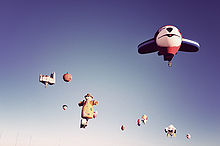 The Albuquerque International Balloon Fiesta is a yearly hot air balloon festival that takes place in Albuquerque, New Mexico, during early October. The Balloon Fiesta is a nine-day event occurring in the first full week of October, and has over 500 hot air balloons each year far from its humble beginnings of merely 13 balloons in 1972.[1] The event is the largest balloon festival in the world, followed by the Grand Est Mondial Air in France.[2]