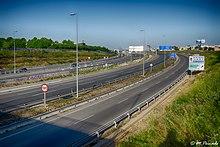 Alcalá's excellent transport links with Madrid have led to its becoming a commuter town, with many of its inhabitants travelling to work in the capital. By Cercanias (railway) is the lines C2 and C7 that links Alcala de Henares with Madrid in 35 minutes, or Guadalajara in 25 minutes, also exists in the peak hours trains called CIVIS, direct train, that makes the journey in 20 minutes. Also it is linked by bus to Madrid, Guadalajara and several towns and villages in nearby. By car, Alcalá de Henares is well linked with the state roads network with the nearby A-2, the highway which starts in Madrid and continues on to Barcelona and to France.