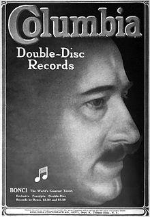 Bonci's artistry was captured on disc by the Fonotipia, Edison and Columbia companies. His first recordings were made in 1905 and his last in 1926, with a handful produced between these dates (in 1913). He is heard to best advantage in operatic arias by Bellini, Rossini, Donizetti and Gluck, but he was also renowned in Europe and the United States for his Rodolfo in Puccini's La boheme, his Riccardo in Verdi's Un ballo in maschera and his Duke of Mantua in Verdi's Rigoletto.