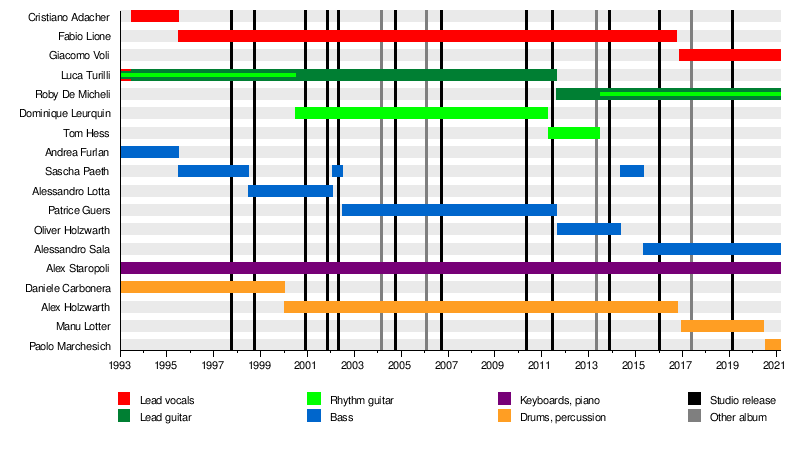 Bassist Oliver Holzwarth left the band in August 2014. Alessandro Sala was announced as his replacement in June 2015, although he had joined the band a few months prior.[18] Sala had previously been a bandmate of Roby De Micheli in the band Sinestesia.[19]