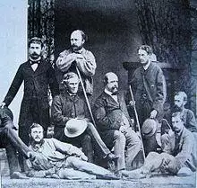 In 1846, he was made commissioner along with P. A. Vans Agnew to demarcate boundaries. Letters were written to the Chinese and Tibetan officials by Lord Hardinge, but no officials joined. A second commission was set up in 1847 which was led by Cunningham to establish the Ladakh-Tibet boundary, which also included Henry Strachey and Thomas Thomson. Henry and his brother Richard Strachey had trespassed into Lake Mansarovar and Rakas Tal in 1846 and his brother Richard revisited in 1848 with botanist J. E. Winterbottom.[6][7] The commission was set up to delimit the northern boundaries of the Empire after the First Anglo-Sikh War concluded with the Treaty of Amritsar, which ceded Kashmir as war indemnity expenses to the British.[8] His early work Essay on the Aryan Order of Architecture (1848) arose from his visits to the temples in Kashmir and his travels in Ladakh during his tenure with the commission. He was also present at the battles of Chillianwala and Gujrat in 1848–49. In 1851, he explored the Buddhist monuments of Central India along with Lieutenant Maisey and wrote an account of these.[9]