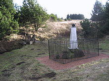 In December 1678 he, along with 60 others, was sentenced to banishment to the American plantations.[6] They were transported by ship to London, where they were to be transferred to an American ship. The American captain, however, on hearing the reason for their banishment, released them. Peden made his way north again and divided the remaining years of his life between his own country and the north of Ireland. His last days were spent in a cave on the River Lugar in the parish of Sorn, near his birthplace and his brother's farm in Auchinleck, and there he died in 1686, worn out by hardship and privation.[6]