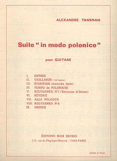 Tansman composed prolifically in most genres and wrote more than 300 works, including 7 operas, 10 ballets, 6 oratorios, 80 orchestral pieces (with 9 symphonies), virtuoso concertos and numerous works of chamber music, among them 8 string quartets, tens of pieces for piano, as well as pieces for the radio theatres and pedagogical works. He is also known for his guitar pieces, mostly written for Andrés Segovia – in particular the Mazurka (1925), Cavatine (1950), Suite in modo polonico (1962), Variations sur un theme de Scriabine (1972). Segovia frequently performed the works in recordings and on tour; it is today part of the standard repertoire.[20][21] Tansman's music has been performed by musicians such as Marya Freund, Jane Bathori, Louis Fleury, Léo-Pol Morin, Mieczyslaw Horszowski, Walter Gieseking, José Iturbi, Arturo Benedetti Michelangeli, Alicia de Larrocha, Bronislaw Huberman, Héléne Jourdan-Morhange, Jascha Heifetz, Joseph Szigeti, Henry Temianka, Pablo Casals, Gregor Piatigorsky, Maurice Marechal, Enrico Mainardi, Gaspar Cassado, Marie-Louise Girod, quartets Pro Arte, Paganini, Pascal, Parrenin.[9]