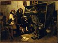 Decamps was the founding father of Orientalism since he revealed everyday Oriental life in the 1831 Salon in Paris. His subjects and style with strong contrast of light and thick material became the reference for painters but also photographers and writers. He was the most influential painter on Orientalism and was proclaimed the chief of the new Orientalist School.[2] Delacroix referred to him in the Women of Algiers (1834), and the Fanatics of Tangiers (1838). Théophile Gautier's Constantinople (1853) was described as an “immense verbal Decamps” by Henry James.[3] Maxime Du Camp named him the Christopher Columbus of the Orient[4] and Théophile Gautier compared his role as the discoverer of the Orient to the role of Jean-Jacques Rousseau as the discoverer of nature in the eighteenth century.[5] Christine Peltre concludes that the only equivalent to his fame were the Arabian Nights (One Thousand and One Nights).[6]
