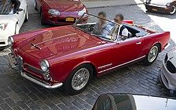 The 2000 was presented in 1957 at the Turin Motor Show, with 4-door, 6-seater saloon Berlina body.[1] Production started in 1958, and the car was available as Berlina or Spider convertible. In 1960, the Sprint coupé was added. The 2000 Berlina had gearbox operated via column-mounted shifter making space for three people in front. The two grand touring versions had the gear lever located in floor, and a higher output engine. Until 1961, when 2+2-seater became available, the Spider was a pure two-seater.