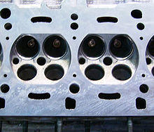 On the Alfa 16V Twin Spark engines one spark plug is ideally located in the centre of the cylinder, as is common in virtually all multi-valve configuration engines. In order to accommodate a second spark plug in the 4-valve combustion chamber, a smaller diameter spark plug is located the very edge of the combustion chamber between an inlet and an exhaust valve. The location of the additional plug means that its impact on maximum performance is marginal. However the engine is able to idle smoothly in very lean conditions (up to 18:1 AFR), this suggests the addition plug is here to improve combustion efficiency under light loads. The next generation Alfa fours, the JTS engines lost the second plugs gained direct injection and increased performance.