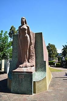 In 1935, Storni may have discovered a lump on her left breast and decided to undergo an operation. On May 20, 1935, she underwent a radical mastectomy.[2] In 1938 she found out that the breast cancer had reappeared.[2] Around 1:00 AM on Tuesday, 25 October 1938. Storni left her room and headed towards the sea at La Perla beach in Mar del Plata, Argentina and committed suicide. Later that morning two workers found her body washed up on the beach. Although her biographers hold that she jumped into the water from a breakwater, popular legend is that she slowly walked out to sea until she drowned. She is buried in La Chacarita Cemetery.[19] Her death inspired Ariel Ramírez and Félix Luna to compose the song "Alfonsina y el Mar" ("Alfonsina and the Sea").[20]