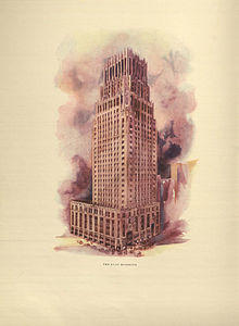 Finn's first commission was as project manager for the Rice Hotel, under contract with the firm of Mauran, Russell & Crowell. The owner of the new hotel, Jesse H. Jones, soon after established a collaboration with Finn which would change the face of Downtown Houston. Finn designed two buildings for Jones across the way from the Rice Hotel: the Foster Building, aka the Houston Chronicle Building, in 1914, and the Rusk Building in 1916. The corner of Texas and Travis was dominated by buildings built by Finn and Jones. In 1926, Finn designed a new seventeen-story wing for the Rice Hotel on behalf of Jones.[2] Finn did architectural work for other commercial clients in the 1920s. He completed State National Bank Building (NHRP-listed) at 412 Main Street in 1923.[5] Jones contracted with Finn to build the Lamar Hotel, where Jones established his new residence. The Jones apartment consumed the whole top floor, though he hired John F. Staub for the interior design.[6] Jones also promised a venue for the 1928 Democratic National Convention without consulting the city of Houston, pledging $200,000 of his own capital. He engaged Finn and Kenneth Franzheim to design and erect the Sam Houston Hall in just four months. The Sam Houston Hall, ostensibly built to be a temporary structure, was larger than Madison Square Garden, and equipped with heavy-duty fans and apertures between the roof and the walls to facilitate air flow.[7] Jones contracted with Finn on another project in downtown Houston, this time with in collaboration with Franzheim and J.E.R. Carpenter, to finish the 37-story, art deco Gulf Building in 1929 — at that time the tallest building in Texas.[2]