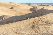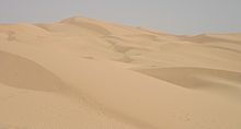 The Algodones Dunes is a large erg (sand dune field) located in the southeastern portion of the U.S. state of California, near the border with Arizona and the Mexican state of Baja California. The field is approximately 45 miles (72 km) long by 6 miles (9.7 km) wide and extends along a northwest-southeast line that correlates to the prevailing northerly and westerly wind directions. The name "Algodones Dunes" refers to the entire geographic feature, while the administrative designation for that portion managed by the Bureau of Land Management is the Imperial Sand Dunes Recreation Area (sometimes called the Glamis Dunes). In 1966, Imperial Sand Hills was designated as a National Natural Landmark by the National Park Service.[1] The Algodones Dunes are split into many different sections. These sections include Glamis, Gordon's Well, Buttercup, Midway, and Patton's Valley. Although the Arabic-derived Spanish word algodones translates to "cotton plants", the origin of the toponym is unknown.
