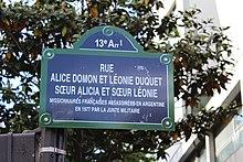 - In 2000, Buenos Aires named a small plaza "Hermana Alice Domon y Hermana Leonie Duquet," located at the intersection of Moreto, Medina, and Cajaravilla streets.