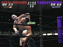 Square's aim with the title was to create some of the most realistic wrestlers seen in video games, with accurate details such as a faithful replication of body-muscle physics and facial expressions.[9] Screenshots of the game were shown during the Square Millennium Event in Japan in 2000; and a battle was played in demonstration by Yusuke Hirata and a young Japanese idol later in the same year at the Tokyo Game Show.[10][11]