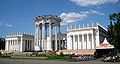 Exhibition of Achievements of National Economy (Russian: Выставка достижений народного хозяйства, Vystavka dostizheniy narodnogo khozyaystva, abbreviated as VDNKh or VDNH, Russian: ВДНХ, pronounced [vɛ dɛ ɛn xa]) is a permanent general purpose trade show and amusement park in Moscow, Russia.[1] Between 1991 and 2014 it was also called the All-Russia Exhibition Centre (Russian: Всероссийский выставочный центр). It is a state joint-stock company.