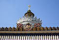In 1992, VDNKh was renamed, receiving the new acronym VVC, which remained in use until 2014. It occupies 2,375,000 square metres of which 266,000 square metres are used for indoor exhibits. The territory of VDNKh is greater than that of the Principality of Monaco and has approximately 400 buildings. Inadequate maintenance of Vera Mukhina's statue caused such disrepair that the statue was disassembled. It was slated to be refurbished and installed on the top of the new pavilion by 2008,[3] but funding shortages lead to dragged-out restoration. It was finally reerected in December 2009, now standing atop of a large constructivist pavilion, apparently recreating the original exhibition pavilion from the 1937 World's Fair in Paris that it was designed for.