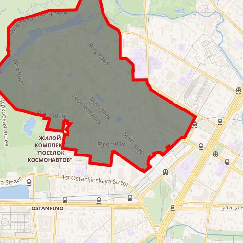 VDNKh is located in Ostankinsky District of Moscow, less than a kilometer from Ostankino Tower. It is served by VDNKh subway station, as well as by Moscow Monorail. Cosmonauts Alley and the Worker and Kolkhoz Woman statue are situated just outside the main entrance to VDNKh. It also borders Moscow Botanical Garden and a smaller Ostankino Park, and in recent years the three parks served as a united park complex.