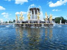 The northern area of the site is an area shared between the exhibition centre and the botanic gardens of the nearby Russian Academy of Sciences. In it are agricultural pavilions and estate pools with vegetation including: Michurin's Garden and the Golden Spike Fountain. All the fountains in the centre are covered with gold. There are also many statues situated throughout the site, particularly of Soviet leaders. In addition, the site houses cinemas, cafés, theatre pavilions as well as a church built after the fall of the Soviet Union.