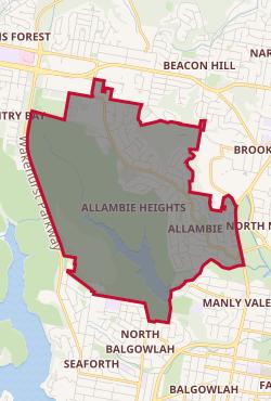 - ^ a b Australian Bureau of Statistics (27 June 2017). "Allambie Heights (State Suburb)". 2016 Census QuickStats. Retrieved 28 December 2017.