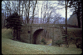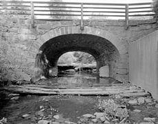 A skew arch bridge, a masterwork of cut stone construction, is another feature of the site near the Lemon House. The bridge is 60.4 feet (18.4 m) long on the south elevation, 54.9 feet (16.7 m) long on the north elevation, and 22.2 feet (6.8 m) high.[15] It was the only bridge on the line that was built to carry a road.[15]