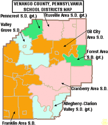 Allegheny-Clarion Valley School District (ACVSD) is a small, rural, public school district in western Pennsylvania. It spans portions of four counties and is the only Pennsylvania public school district to do so. The district is one of the 500 public school districts of Pennsylvania. The Allegheny-Clarion Valley School District encompasses approximately 121 square miles (310 km2). In Armstrong County it covers the City of Parker and Hovey Township. In Butler County it serves Allegheny Township. In Clarion County it serves the Boroughs of Emlenton, Foxburg and St. Petersburg and Perry Township and Richland Township. In Venango County it serves the Borough of Emlenton and Richland Township and Scrubgrass Township. According to 2000 federal census data, Allegheny-Clarion Valley School District serves a resident population of 5,944. By 2010, the district's population declined to 5,749 people.[4] In 2009, the district residents' per capita income was $15,525, while the median family income was $36,867.[5] In the Commonwealth of Pennsylvania, the median family income was $49,501[6] and the United States median family income was $49,445, in 2010.[7] By 2013, the median household income in the United States rose to $52,100.[8]